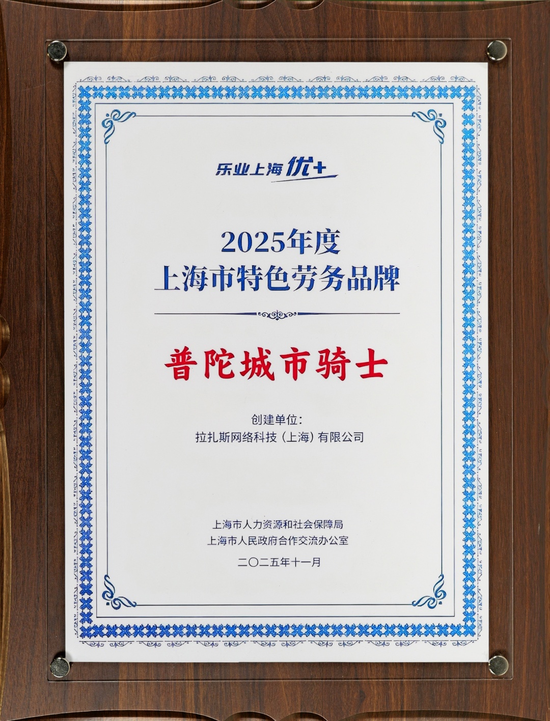 “普陀城市骑士”被评为2025年度上海市特色劳务品牌。在当前新就业形态蓬勃发展的时代背景下,普陀区人社局整合区域资源,坚持以品牌促就业,联合淘宝闪购-饿了么共同打造“普陀城市骑士”劳务品牌,以“放心点、准时达”为核心服务理念,致力为城市居民提供餐饮、快消等多领域即时电商服务,凭借便捷高效的品质服务,成为了人民城市美好生活的创造者、守护者。