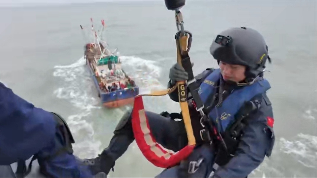 就在首趟任务完成后不久,机组又接到新的指令:150海里外另一名渔民手部重伤。机组迅速完成准备工作,再次起飞。面对低能见度和风浪影响,救生员采用垂降登船,运用双人单套法成功转移伤员,于12时07分安全返回。