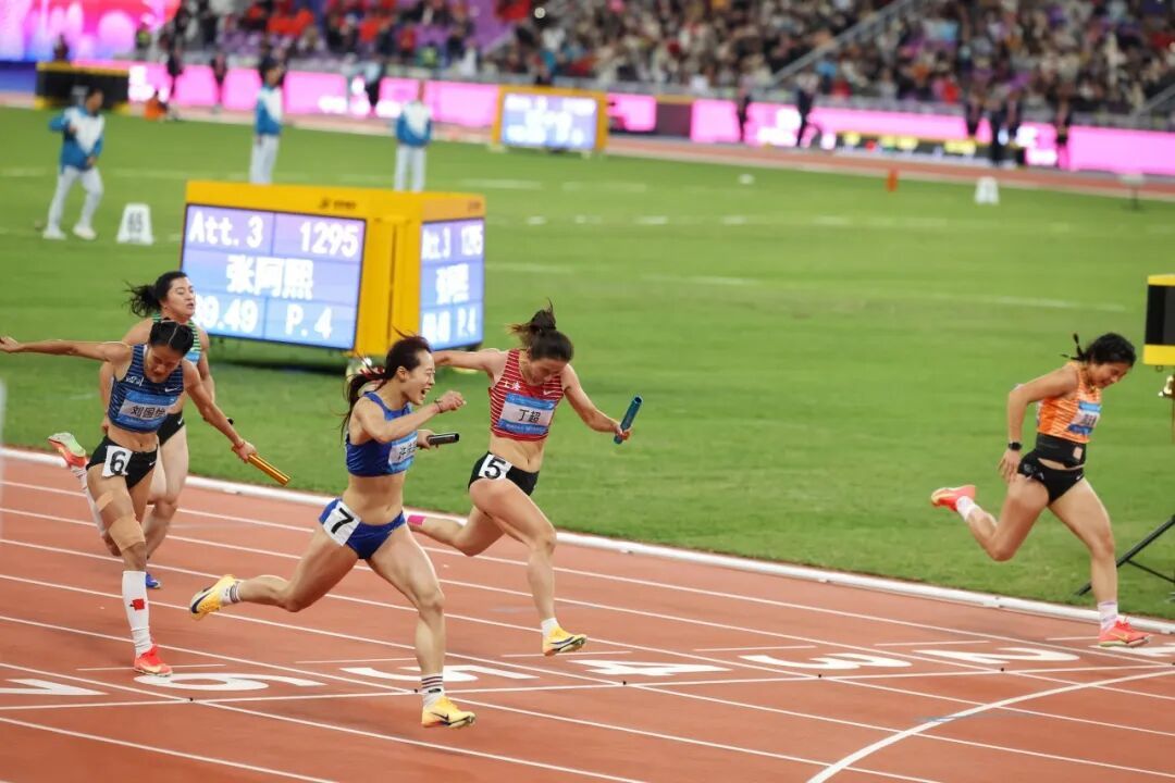 本场比赛汇聚全国顶尖女子百米选手,发枪后,上海队的四位姑娘凭借出色的节奏把控与配合,最终收获亚军。