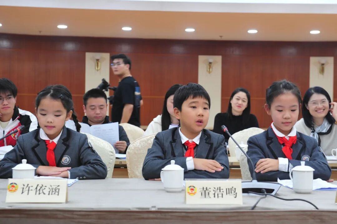 会上,“小委员”们分享了各自的提案。龙茗中学的王辰熠同学带来《关于推行“青老同行,社区无障”社区老人关爱的建议》,关注老年群体的生活便利问题;浦江三中的宋铭初同学将目光投向视障人群出行安全,提出《关于完善闵行区盲道规划与监管机制的建议》;七宝实验小学的董浩鸣、姜芊宇、许依涵三位同学联合提交的《关于为老旧小区楼梯房加装“爱心折叠椅”的提案》,传递出对特殊群体的关怀。“小委员”们逻辑清晰地阐述了各自提案中的问题现状、成因分析以及解决方案,充分展现了新时代青少年的社会观察力和责任担当。