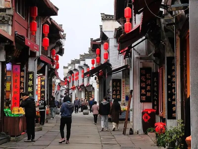 第⑤天漫游屯溪老街,品尝黄山烧饼、徽墨酥等非遗美食。