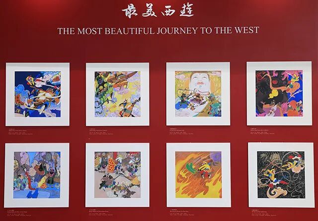 在第三十一届北京国际图书博览会上拍摄的以《西游记》为主题的插画展。新华社 图
