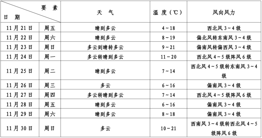 今天下半夜到明天早晨局部有雾,出行需注意交通安全。明天白天以晴到多云为主,延续好天气。气温再上一层楼,最高19℃,最低8℃,相对湿度85%—30%,偏北风转东南风3—4级,出门走走逛逛,在家洗洗晒晒,都是恰到好处。只是昼夜温差较大,外套还是要备好。