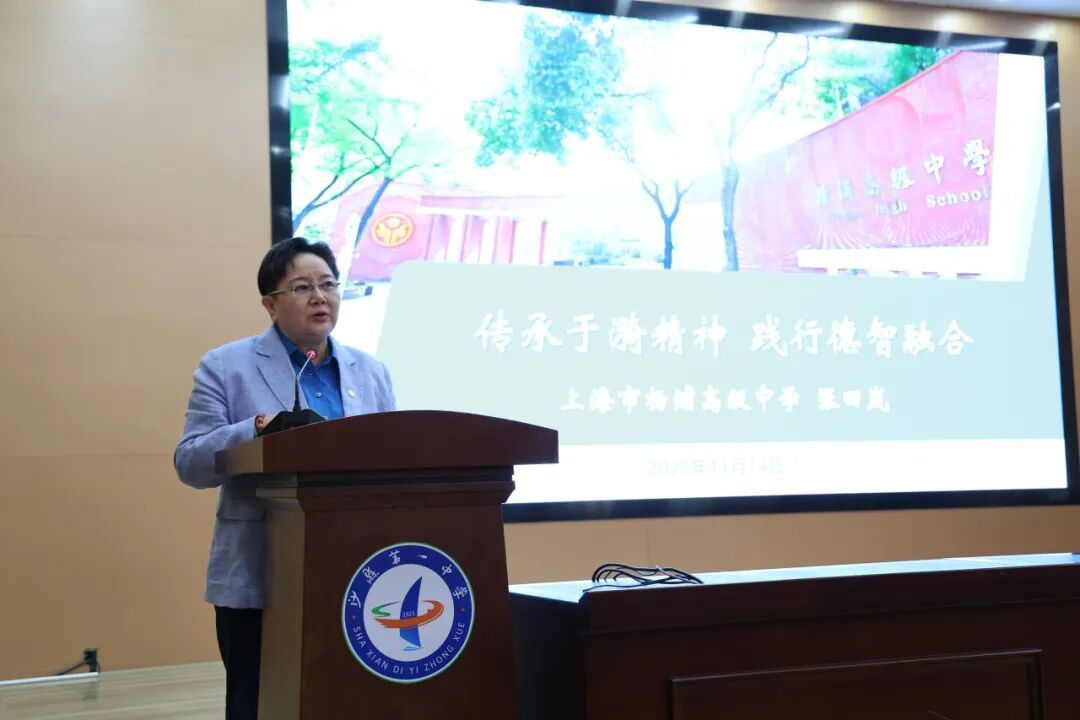报告中,张校长结合杨浦高级中学的办学实践,详细介绍了学校在课程建设、课堂教学等方面践行“德智融合”的具体路径。她从“一切为民族”的爱国初心到“三个制高点”的办学格局,从“丹心一片”的师者大爱到“一身正气”的师表风范,全方位展现了于漪教育教学思想在新时代的生命力。