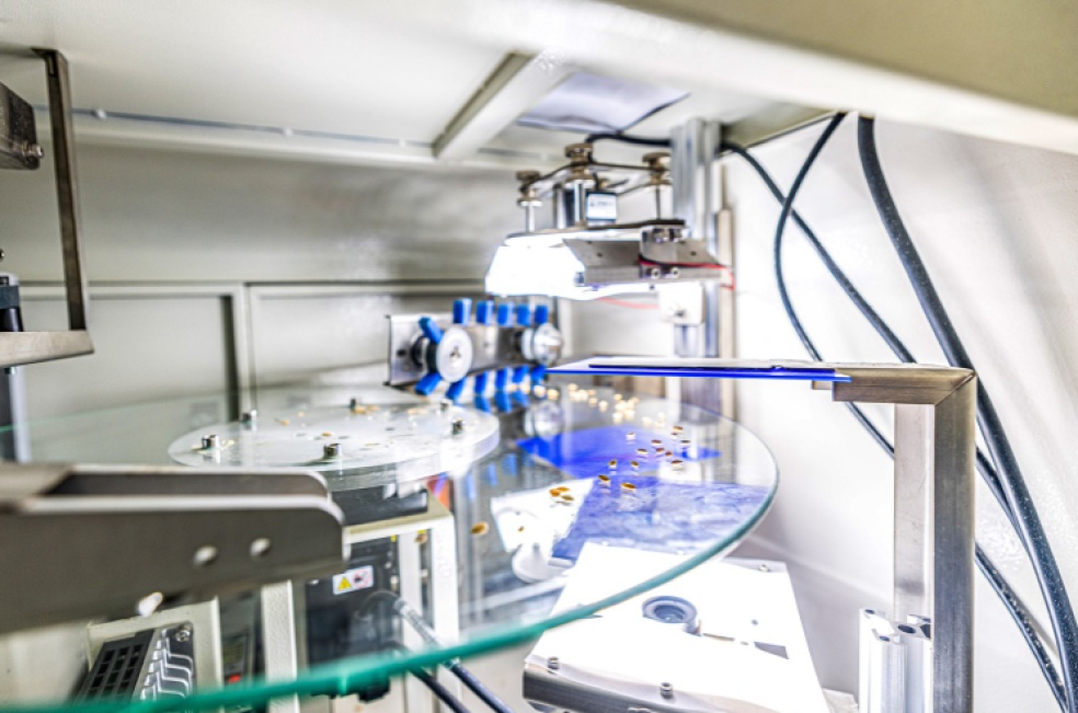 车辆进入粮库后,激光扫描迅速测量出车身长11.91米、宽2.25米,并据此计算出11个取样点位。随后,细长的中空扦样铁管从车厢不同位置插入取样,稻谷样品经管道被送至2楼化验室,由设备自动分装为三份:一份送入“大箱子”样式的粮食质量一体化自动检验系统,一份用于人工复检,另一份则打包封存以备核查。