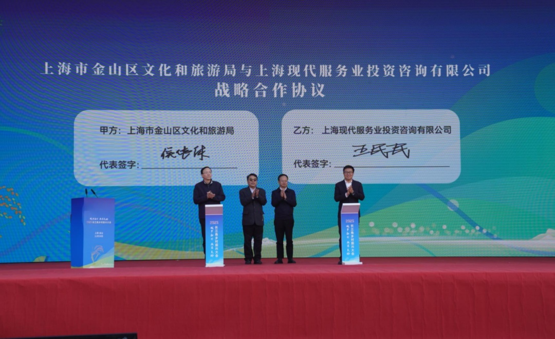 现场,安徽黄山市、浙江丽水市相关市领导分别分享长三角地区的乡村振兴相关探索,并进行城市推介,金山区文旅局、上海现代服务业联合会共同签署“文旅赋能乡村振兴”合作签约。