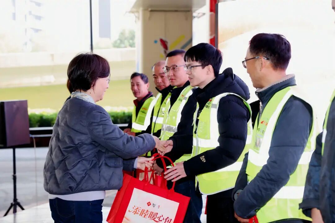 城市焕新,离不开建设者的汗水;生活便利,少不了新就业群体的奔波。活动中,10位来自蕃瓜弄项目中铁二十四局城市建设者及10位快递外卖小哥新就业群体代表受邀上台,接收了满载谢意的“添睦暖心包”。