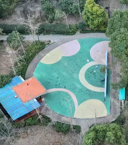 虹湾路55弄金枫里小区始建于2016年,属于彩虹湾大型新社区。小区中心南广场有一处塑胶健身场地,平时供小区居民日常休闲活动使用,面积约240平方米。因常年风吹日晒加之使用频率高,塑胶地面已出现多处开裂、脱落,形成了不少积水的洼地,不仅影响美观和使用体验,更存在安全隐患,老人散步需小心翼翼,孩子奔跑玩耍让家长提心吊胆,场地亟需进行更新改造。