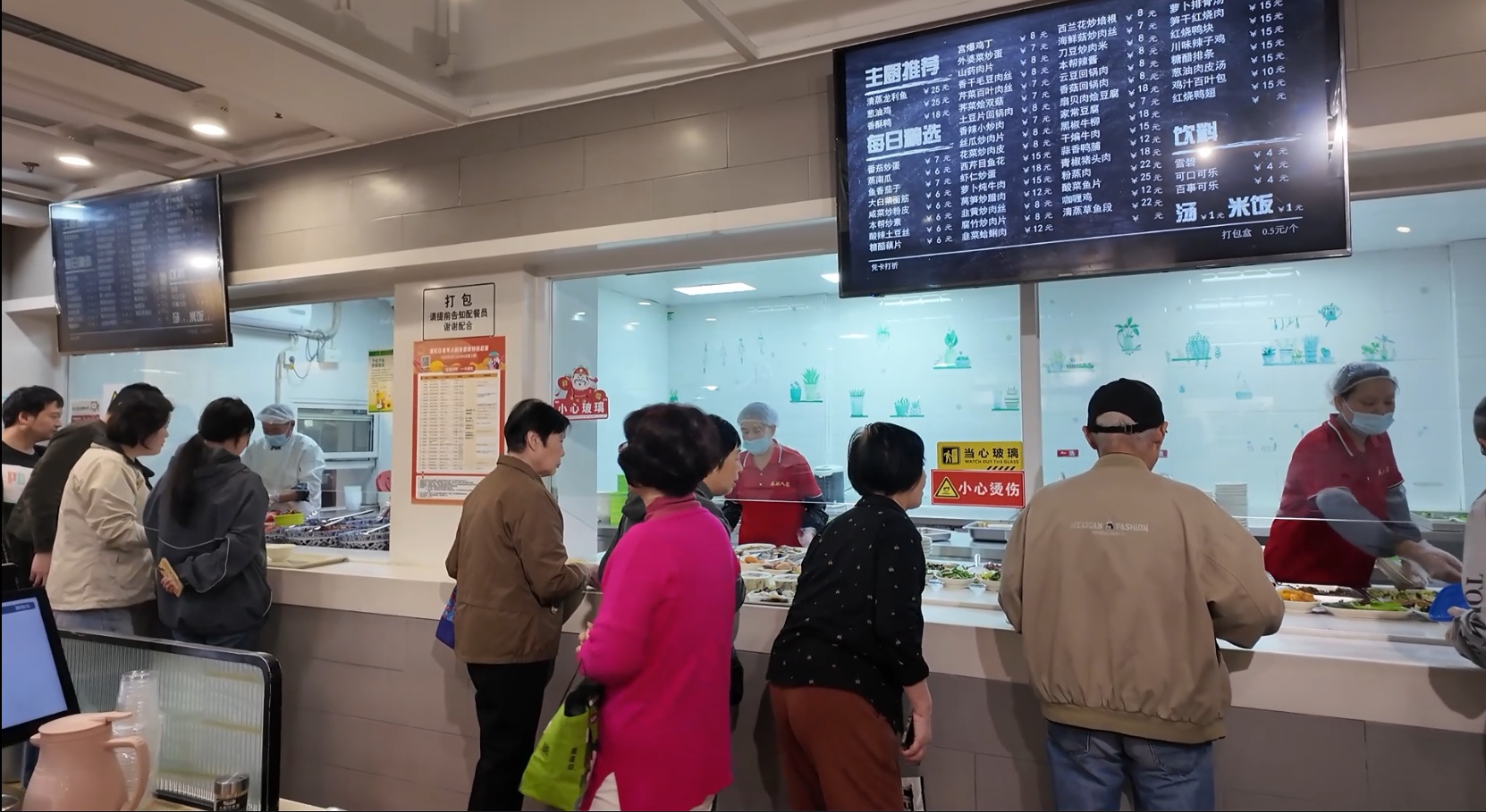 “我就喜欢在这里吃饭,味道不错,特地赶过来。”一位家住附近的老人称赞道。他用布满皱纹的手指轻点玻璃餐台:“你看,生炒鱼片,盐水鸭,三鲜豆腐……都是我爱吃的。”如今,已是徐爷爷第五个年头在这里解决午饭。“不用买汰烧,直接吃现成的了。”一句简单的话,道出了无数老人的心声——省心、省力,更有人情味。