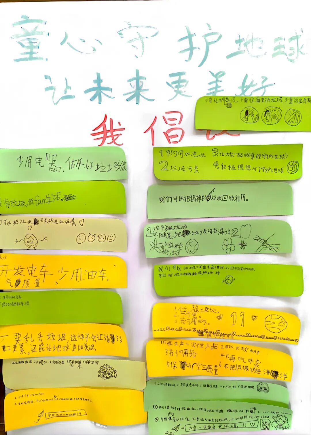 活动的尾声,孩子们纷纷在倡议板上郑重写下承诺:“多种植树木”、“节约每一滴水”、“坚持绿色出行”。一张张稚嫩的便利贴,汇聚成延吉社区最动人的绿色风景线。