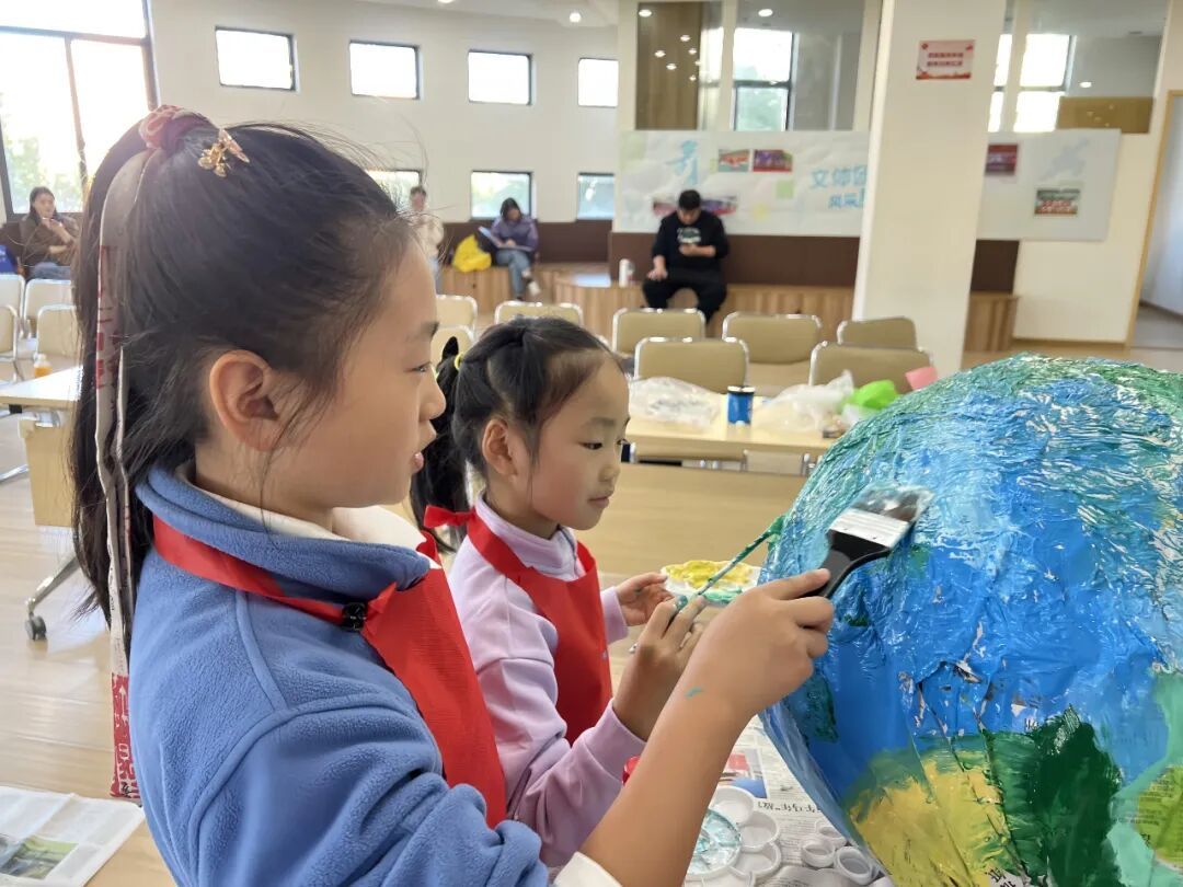 活动现场没有严肃说教,只有热火朝天的创作与讨论。这里没有被动的听众,只有积极寻找答案的“未来合伙人”。在气候议题宏大的叙事下,如何让孩子们产生真实感?在“妙笔绘地球”环节,来自水丰路小学和上理附小的学生们化身“地球修补师”,他们先在球体模型上细致描绘蔚蓝海洋与翠绿大陆,随后将收集的废弃瓶盖、塑料片等生活垃圾拼贴在刚刚绘就的美丽星球上。
