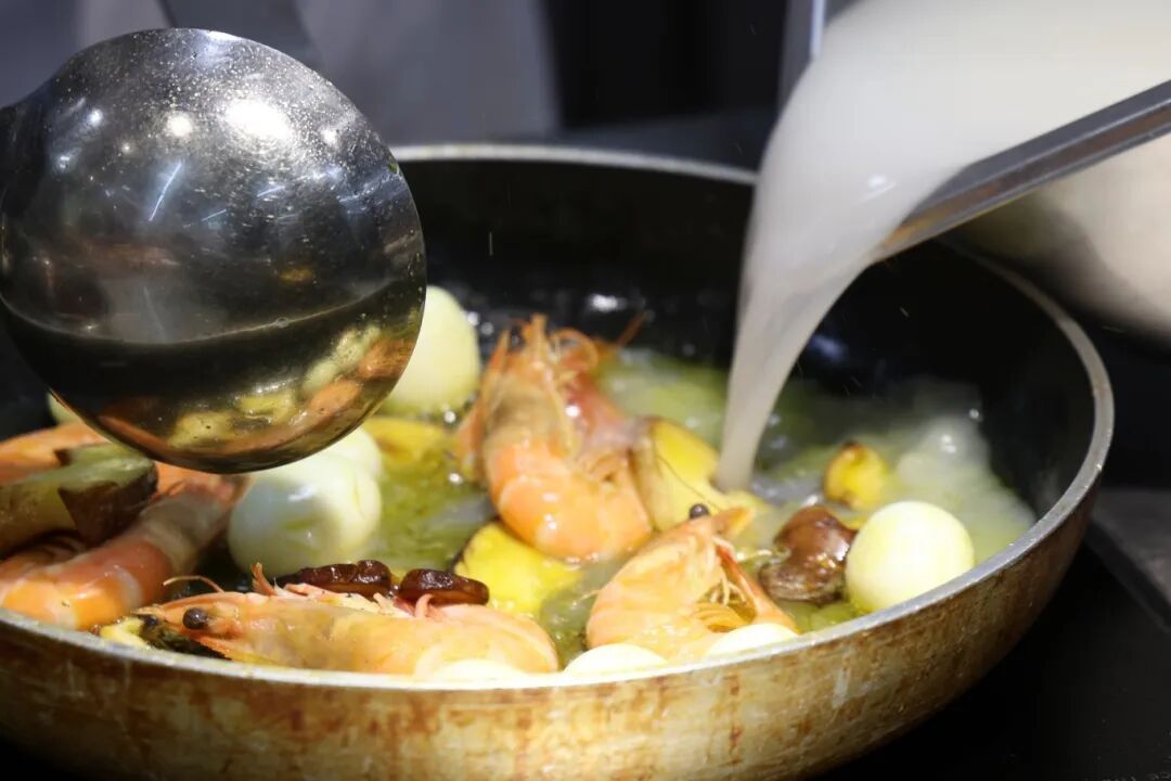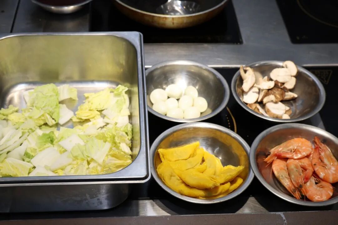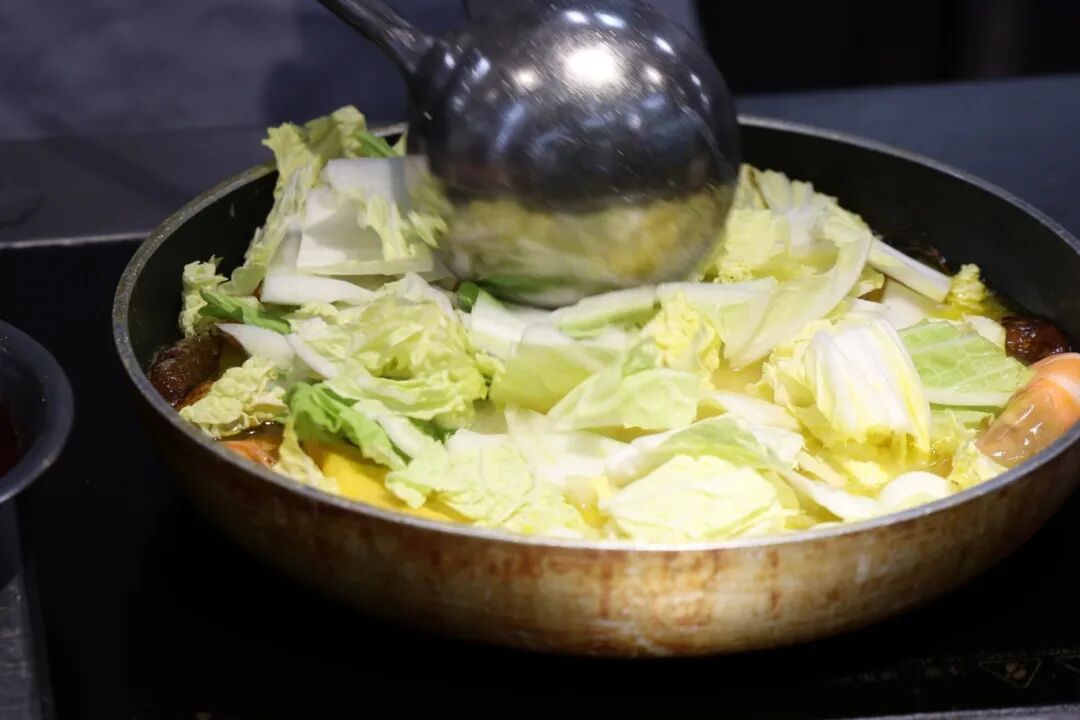 选用白菜、自制蛋饺、鲜虾、鹌鹑蛋、香菇,用高汤熬煮,把不同的鲜味融入到一起,就像农家质朴的家常菜,用实打实的好料迎接八方来客。
