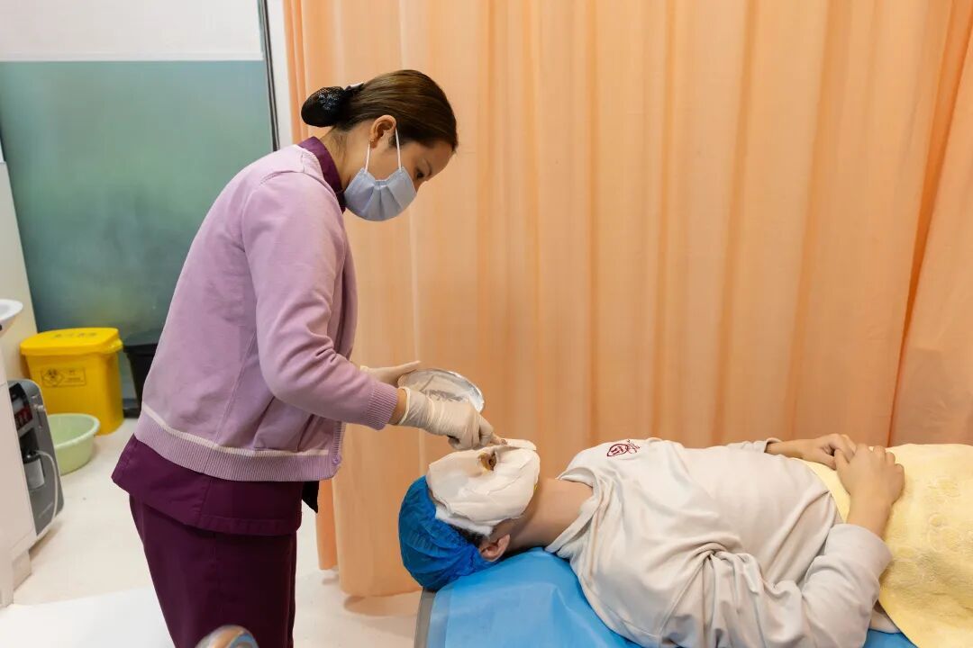 针对这些高发的皮肤问题,上海市中医医院开展了一系列特色治疗。“对于面部的脂溢性皮炎、玫瑰痤疮及痤疮等,我们有中药倒模治疗。”陶颖娜介绍,该治疗利用石膏凝固过程中产生热能之特性,使局部皮肤温度上升、微血管扩张,减轻炎症浸润,并使局部皮肤表皮角质软化,进而加强营养及药物吸收,辅以特定中药膏剂以起到清热解毒、改善皮肤状况的目的。