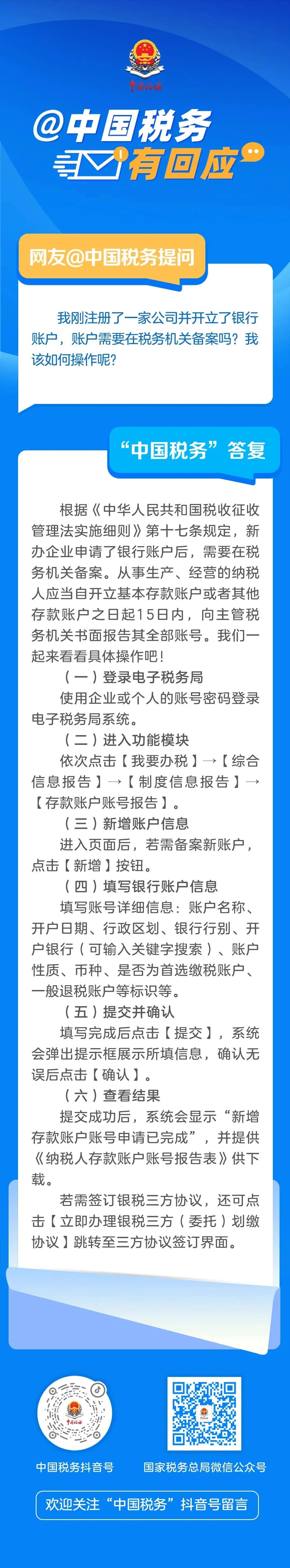 @中国税务有回应丨新办企业开立了银行账户,需要在税务机关备案吗?如何备案?