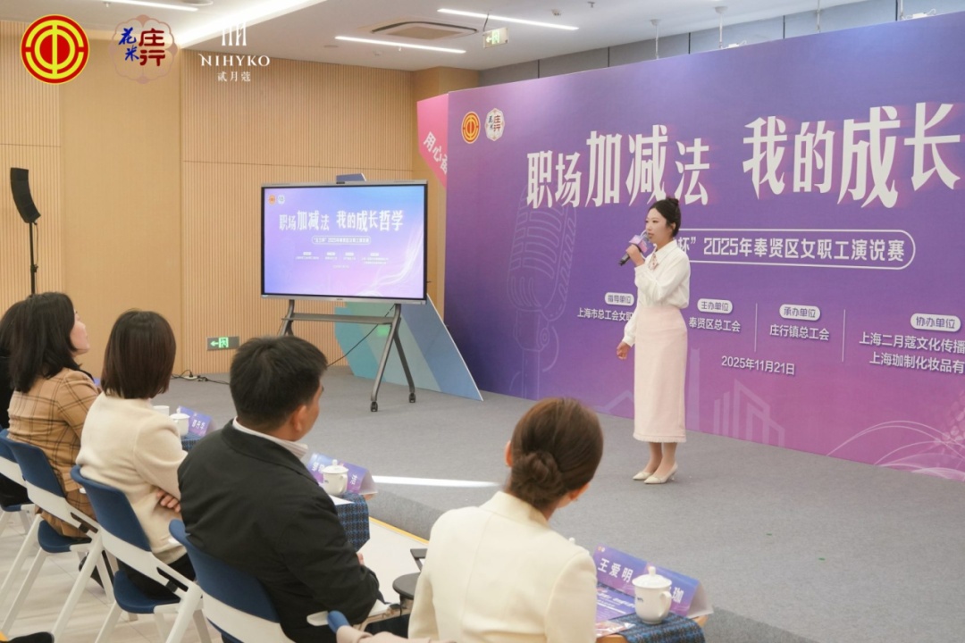 在这个充满活力与挑战的时代,每一位女职工都在用自己的方式书写着独特的成长篇章。11月21日下午,由上海市总工会女职工委员会指导,奉贤区总工会主办、庄行镇总工会承办的“职场加减法 我的成长哲学”2025年奉贤区女职工演说赛,在上海奉贤区世外学校小礼堂温情上演。来自各行各业的女职工选手们登台发声,用真挚的故事、饱满的热情,诠释着新时代女性的成长智慧与职场担当。