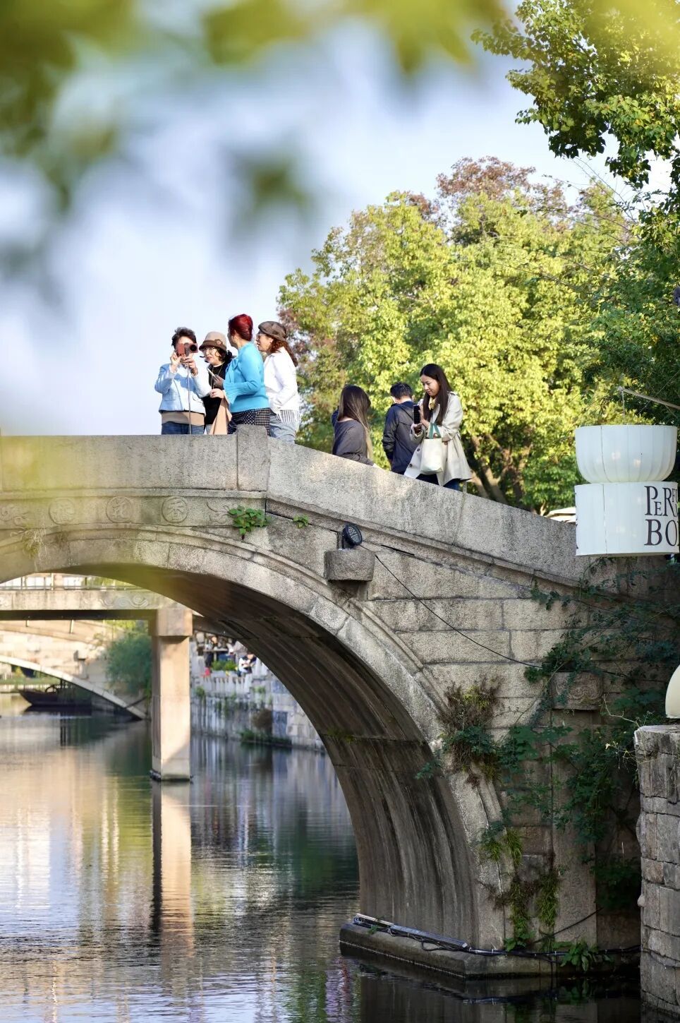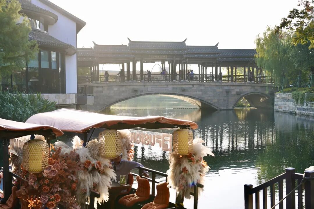 季节更迭,蟠龙新天地的魅力却未曾减退。香花桥静卧水面,倒映着天空与树影;烟雨长廊在微凉的风中更添几分诗意,漫步其间,仿佛时光也慢了下来。这里既有江南水乡的婉约,又有现代生活的温度,沿河的店铺咖啡香气袅袅飘散,与古建筑的韵味交织在一起,营造出一种跨越时空的温馨氛围,秋冬之际,人气依旧,暖意不减。