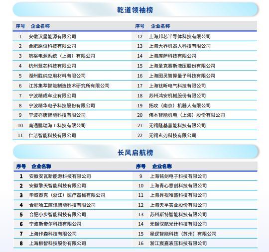 11月21日,长三角高端装备新质领袖榜单在松江发布。经过多轮筛选和专家评审,38家企业最终入选,其中伟本智能机电(上海)股份有限公司等22家企业上榜“乾道领袖榜”,安徽安瓦新能源科技有限公司等16家企业入选“长风启航榜”。