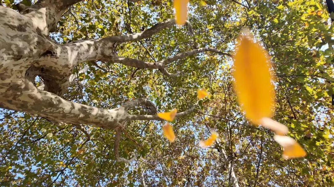 11月的黄叶缀满枝头,阳光穿过叶隙洒在柏油路上,与老洋房的斑驳墙面交织成诗。落叶随风轻舞,踩上去沙沙作响,搭配20路电车“叮叮”的百年鸣笛,是自然与岁月合奏的乐章。