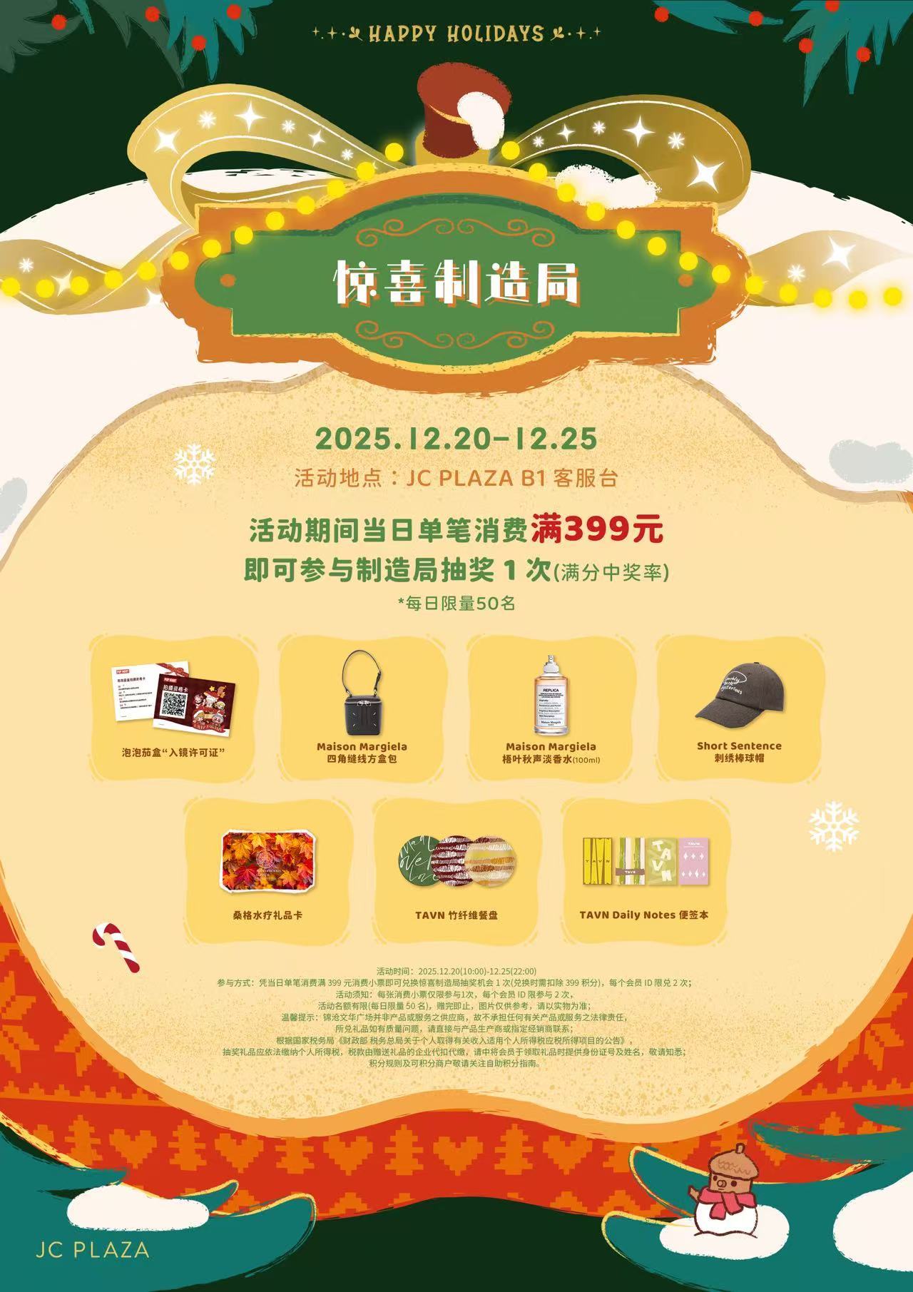 作为南京西路的重要地标,JC PLAZA一直致力于以高品质文化活动与公共空间创新设计,带来更亲切可达的城市体验。今年的“JC 冬日星光绮旅”不仅是一场冬季主题活动,更是一段兼具潮流文化艺术、轻社交属性与城市治愈力的冬季陪伴。在沉浸式的场景、趣味互动中,市民能够以轻松的方式感受冬季的温度与心意。