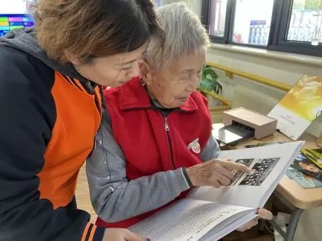 86岁的钱奶奶在中心已有6载。患有认知障碍和老年性震颤的她,这次率先体验成为AI相册回忆录的“主角”。这本《从蒙恩者到自主者》的回忆录,记录了她作为一位女性知识分子在时代浪潮中实现自主精神的历程:从80年前在孤儿院长大到青年时成为“嘉善女状元”,再到投身金山石化从一线化验员成长为高级工程师,随后又十几年如一日照顾中风的丈夫。如今她成了“被照护者”,享受着工作人员的悉心照护,一同回味在数字载体中温暖的人生叙事诗。