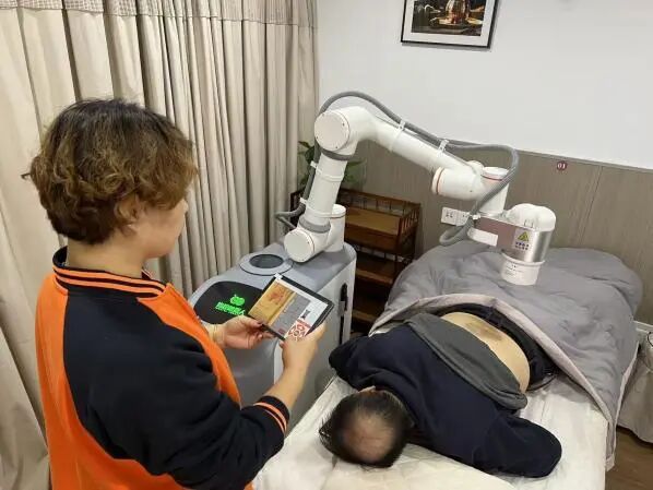 在智能舌诊仪前,只需伸出舌头拍张照,AI系统立即快速分析个人体质,生成专属调理建议,阴虚、阳虚一眼辨明,调理方案一键生成。同样备受欢迎的还有艾灸机器人。搭载六轴机械臂与智能感应系统,实现精准控温、穴位定位,模仿古法艾灸调理体质,告别传统艾灸的烟熏火燎,温和调理更舒适。