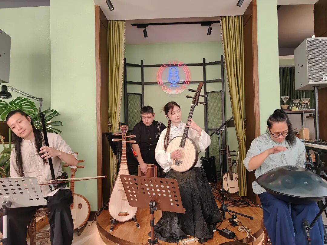 日前,坐落于上海音乐谷的集樂坊音乐吧内乐声悠扬,“音乐下午茶”公益展演活动启幕。M.E迷乐团四位艺术家携传统和西方乐器,配以现代编曲,为现场观众带来一场兼具东方韵味与时代气息的新国风音乐。