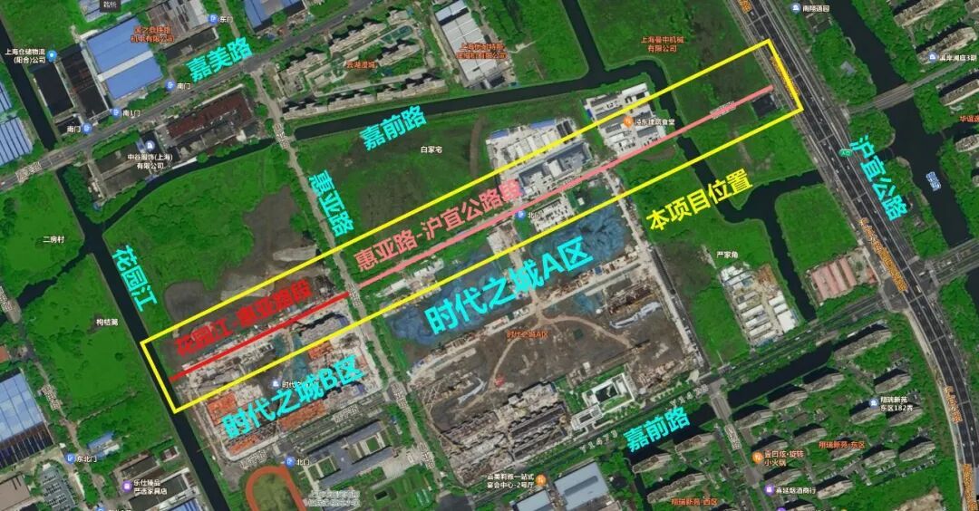 由于工程紧邻正在建设的商品房——时代之城A、B区,施工方将项目分为2个部分,长约250米的花园江至惠亚路路段先行施工,目前处于排水管道布设阶段,预计2026年第一季度竣工;惠亚路至沪宜公路路段预计2026年第三季度开工。