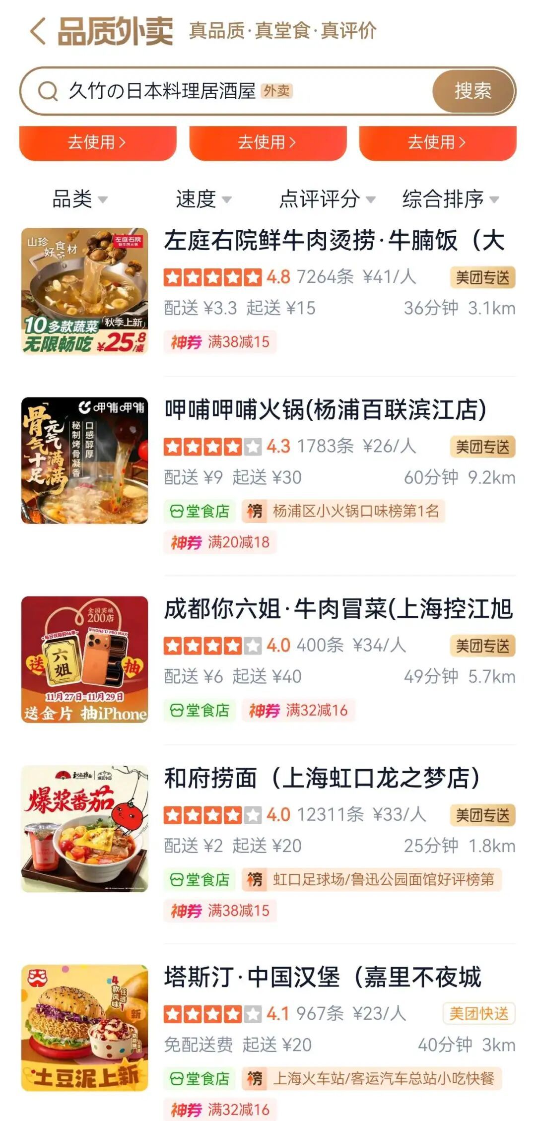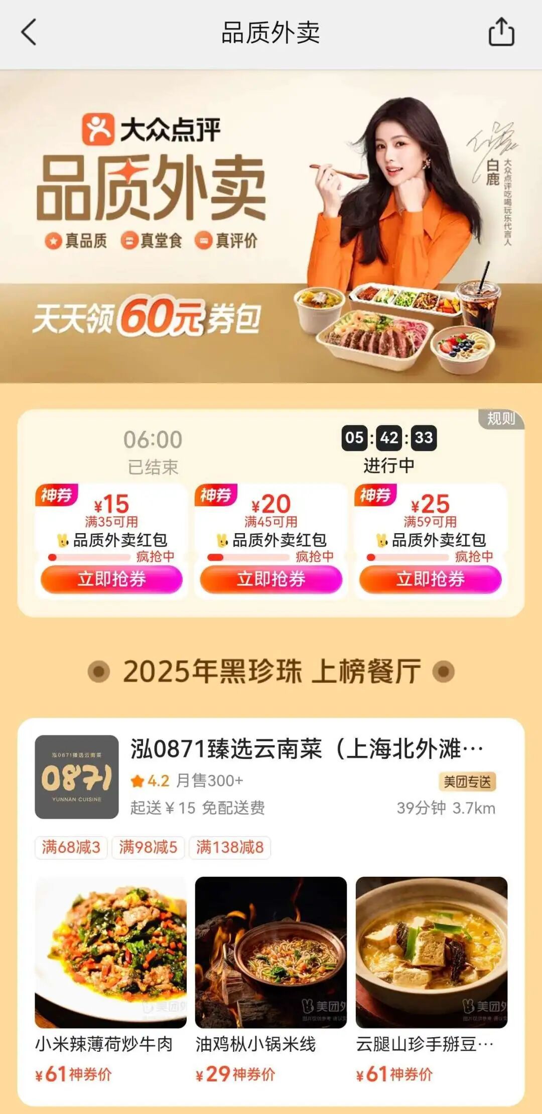据悉,大众点评“品质外卖”自9月重启以来,持续整合平台高分餐厅资源、真实用户评价及美团配送体系,致力于提供“真品质、真堂食、真评价”的外卖服务。截至目前,已有超百万家高分餐厅入驻,其中包括1400余家2025“必吃榜”餐厅、近30家2025“黑珍珠”餐厅,以及近1500家高星酒店餐厅。