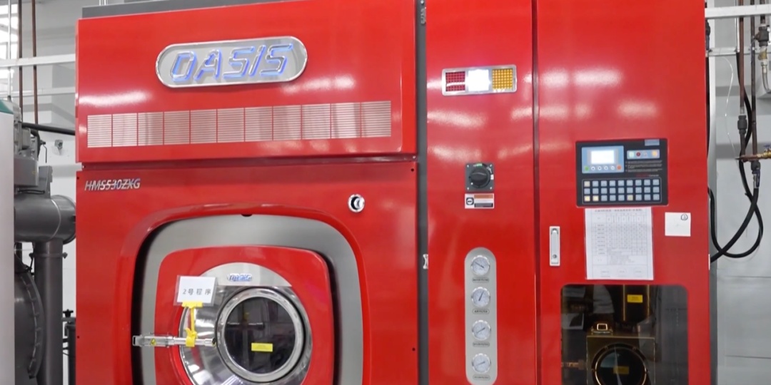 在车间中央的智能洗护区,十余台自动化设备整齐排列,其中两架红色多溶剂干洗机尤为醒目。企业总裁刘建青表示,这类机器专为解决羊绒羊毛大衣的洗涤难题而设。“家用洗涤易导致衣物缩水,而这台配备即时过滤系统的干洗机,能在洗涤过程中持续净化溶剂,使洗完的衣物色泽亮丽。对比普通干洗店,将洗净大衣置入清水中浸泡,水质仍清澈如初。”刘建青笑称这台“干洗机中的法拉利”价值不菲,单台价格约57万元,配套设备总价近70万元,但其高效清洁能力已成为工厂的核心竞争力。