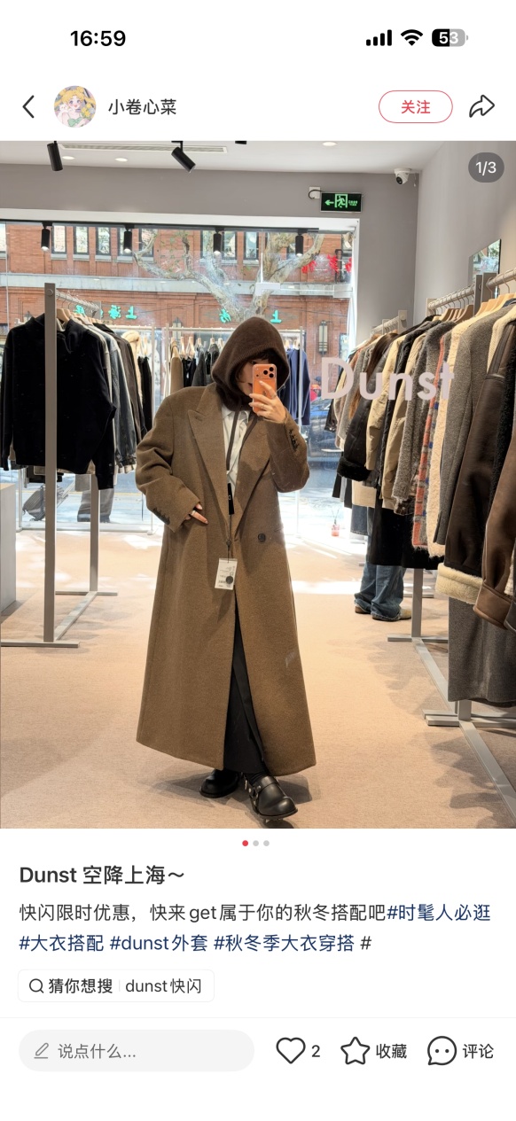 为多维度呈现品牌风格,Dunst特别邀请十位国内颇具影响力的时尚博主,如“碳酸饮料拜拜”等,进行深度探店与内容创作。他们通过社交媒体发布图文、视频等多种形式的内容,多角度呈现快闪店的空间设计、产品细节以及秋冬穿搭灵感,为公众打开一扇了解Dunst品牌风格的窗口。