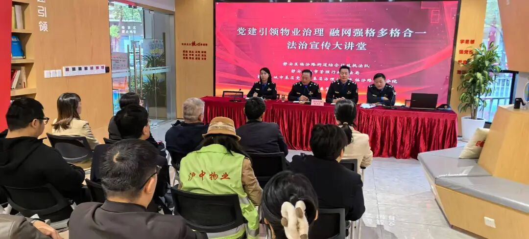 “飞线充电怎么管?”“违规搭建如何早发现?”……近日,在静安区基层治理学院临汾路街道分院的一间会议室内举行了一场气氛热烈的法治宣传大讲堂。来自沪佳装饰公司的代表、施工监理以及辖区多家物业公司的负责人齐聚一堂,与临汾路街道综合行政执法队的队员们面对面,共同探讨如何破解小区治理中的那些“老大难”问题。