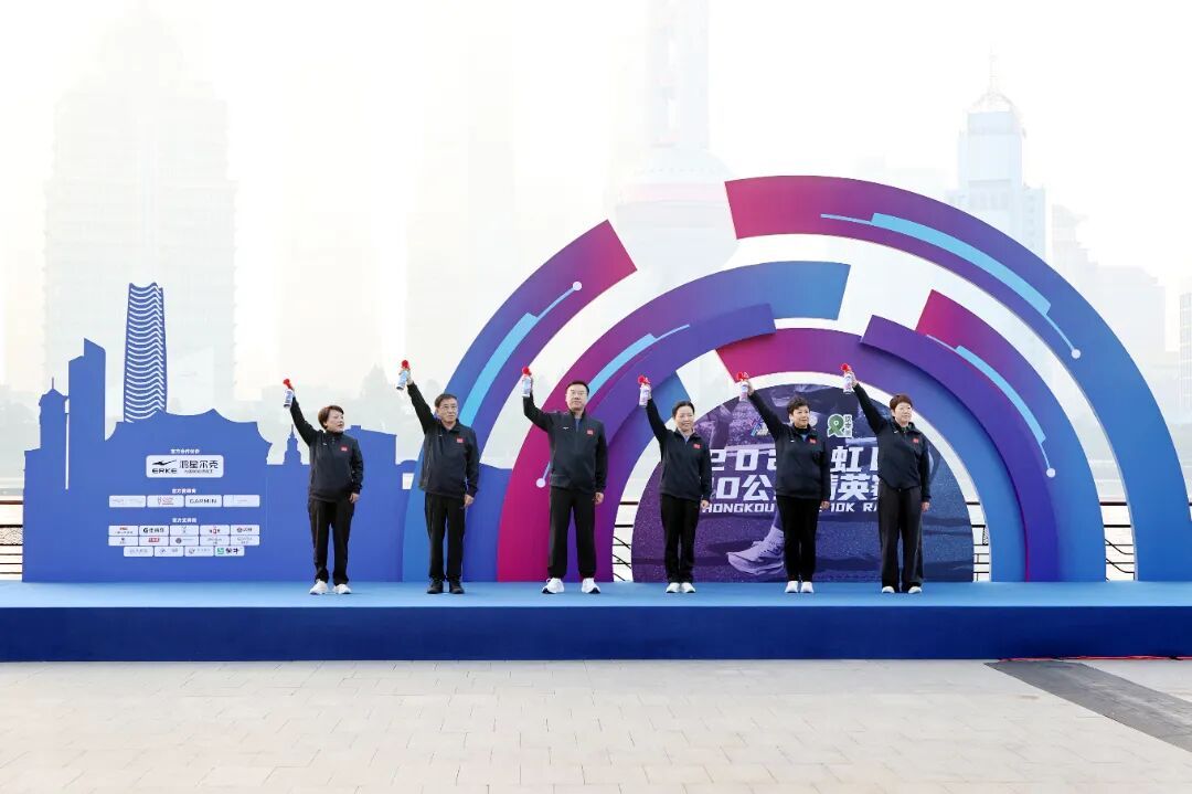 起跑仪式上,虹口区委书记李谦,虹口区委副书记、代理区长蒋蕊,虹口区人大常委会主任朱勤皓,虹口区政协主席石宝珍,上海市体育局一级巡视员宋慧,虹口区副区长陈筱洁,共同为跑者鸣笛。