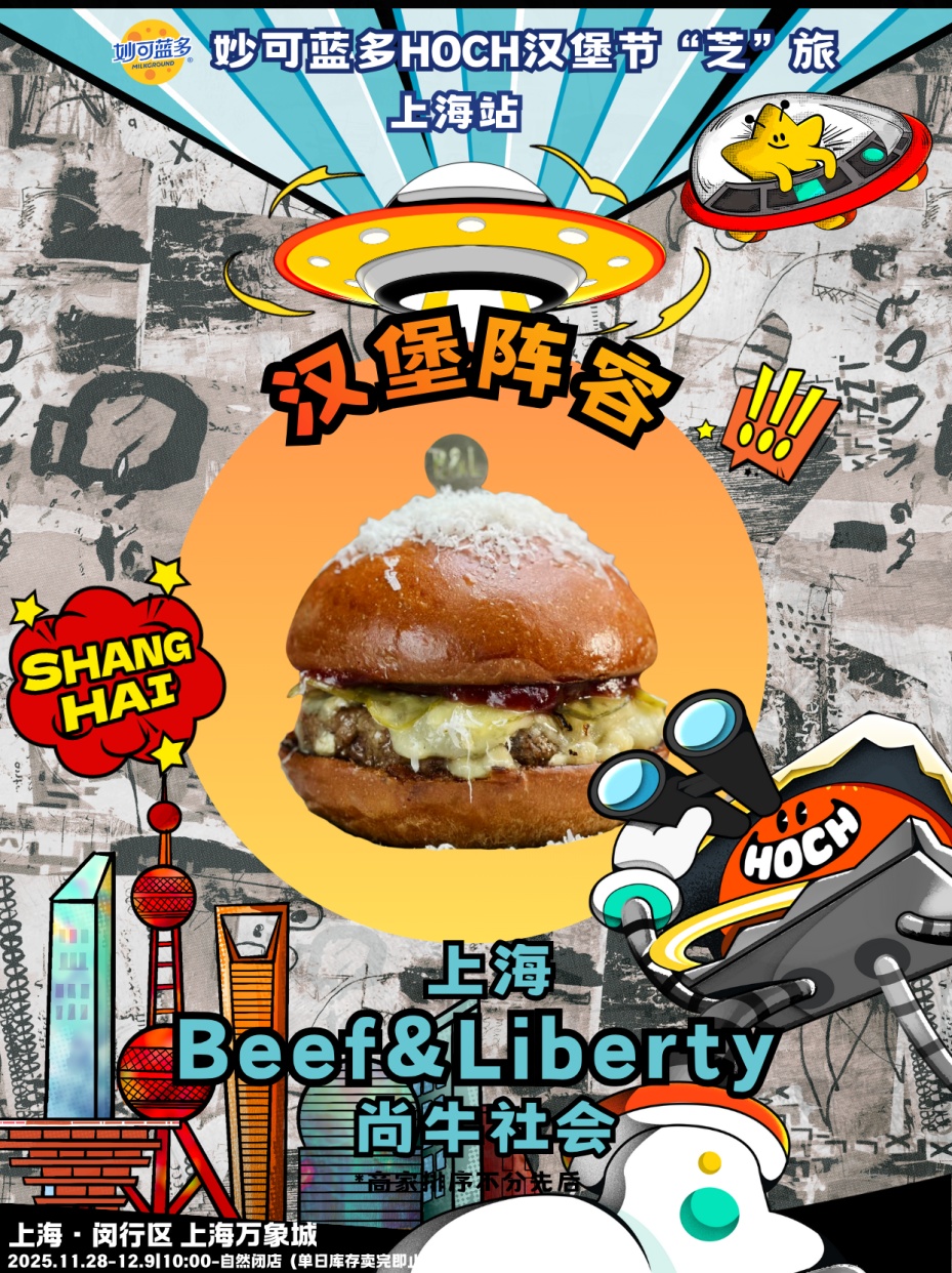 作为2025年全国巡展的压轴之站,HOCH汉堡节自南京启航,已先后登陆武汉、杭州、青岛、郑州、长沙、重庆七座城市,每站均创下销售与客流高峰。此次登陆上海,不仅是对全年巡展的圆满总结,更是一场集结年度精华、答谢全国粉丝的终极庆典。