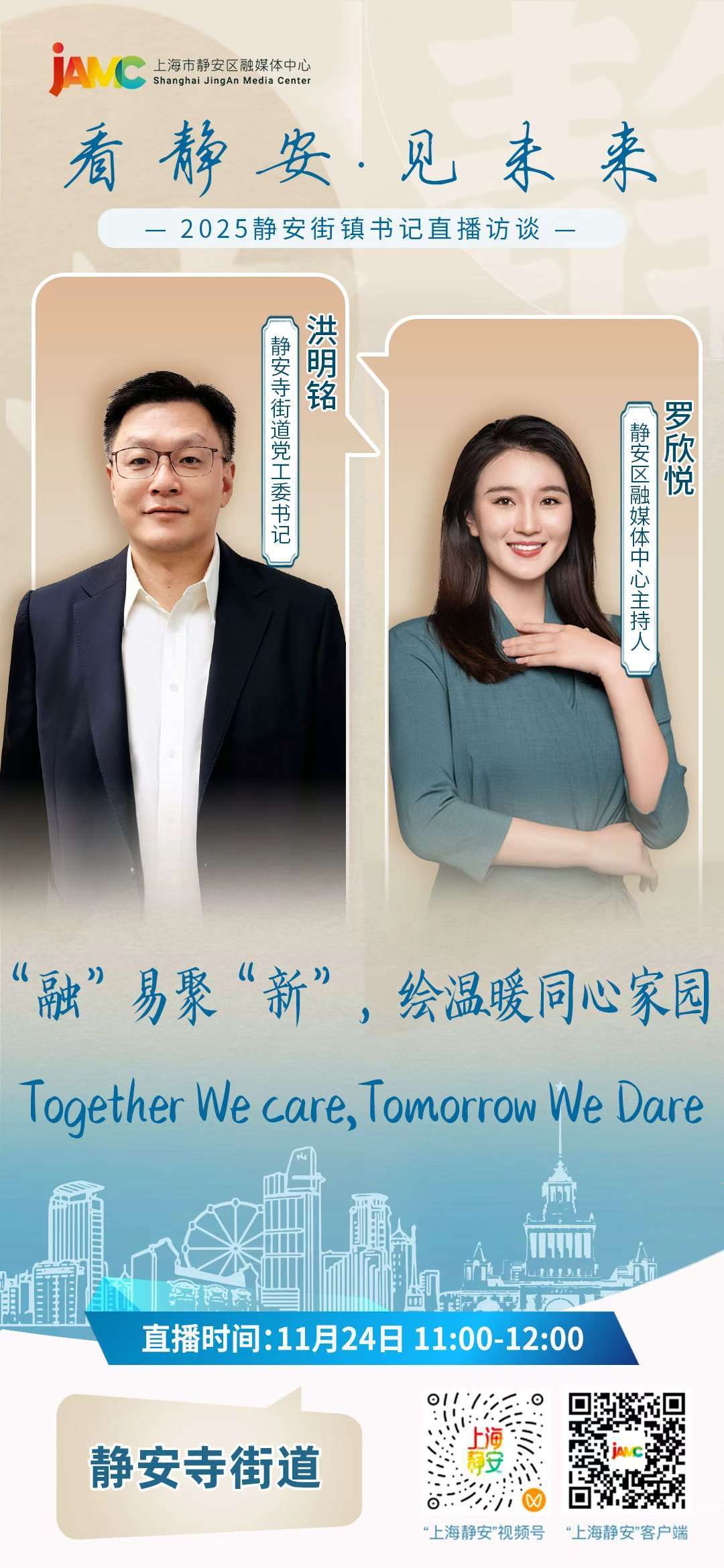 2025年是“十四五”收官、“十五五”谋划的关键年。静安区委宣传部、静安区融媒体中心推出“看静安·见未来”2025静安街镇书记直播访谈节目,以街镇视角带你探寻区域经济发展、民生改善等亮点,感受社区发展与民生温度。