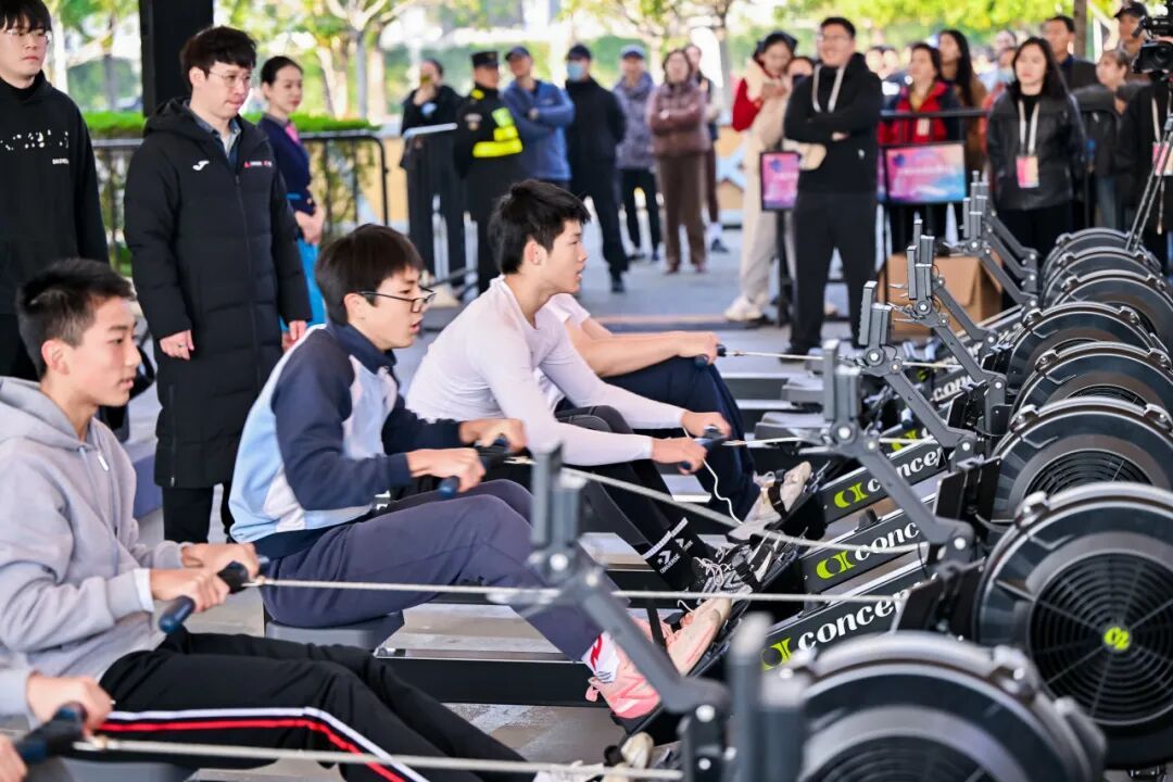 这一全新的比赛形式吸引了不少观众驻足,据悉,比赛依托AI传感系统,选手在广场上的每台赛艇、自行车都接入云端赛道,数据实时换算成“虚拟里程”,校队成绩即时排名,“这场‘虚拟运动会’就像玩游戏一样,赛前几天,孩子主动要求加练,就为把头像‘顶上’排行榜。”一旁的一位家长说。