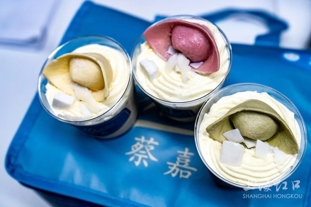 红(覆盆子馄饨)黄(提拉米苏馄饨)绿(抹茶馄饨)