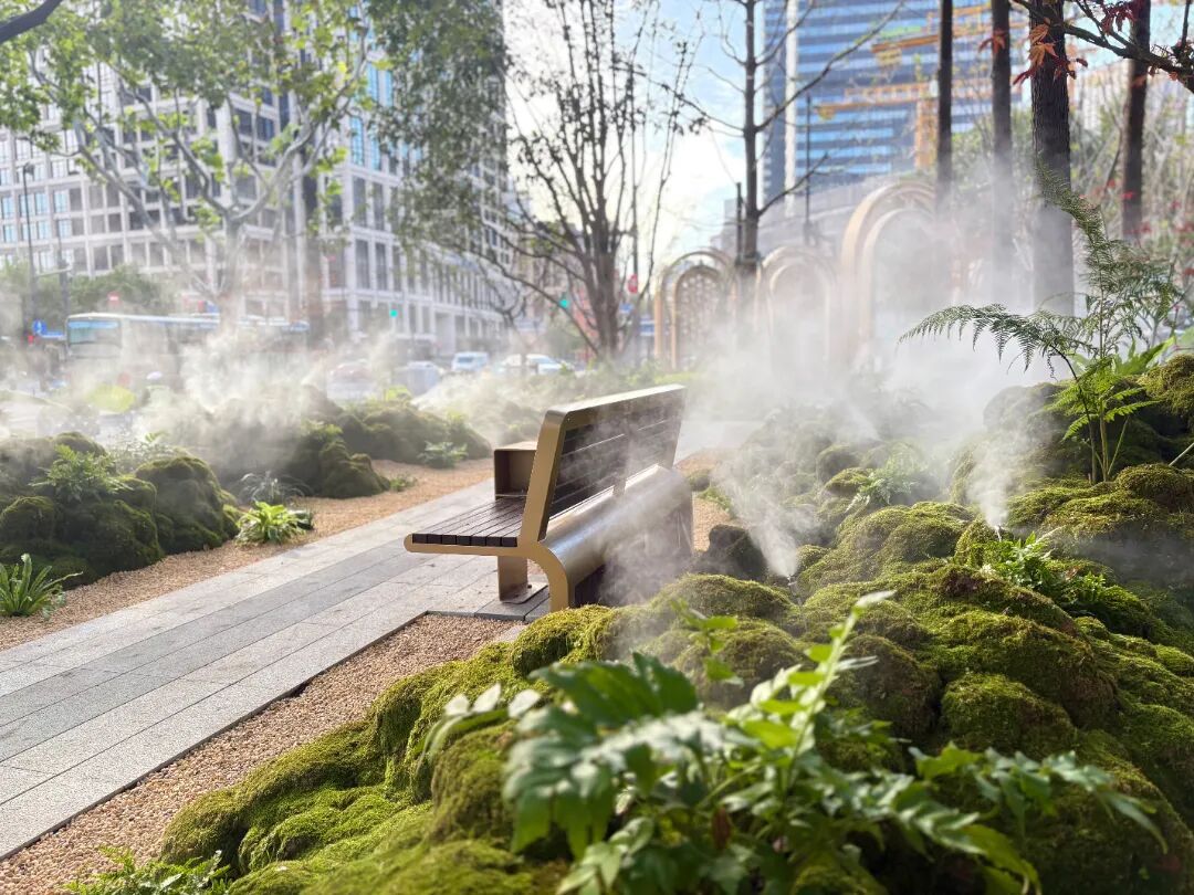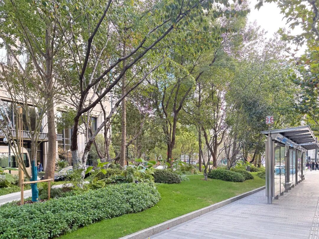 靠近吴淞路公交车站,为候车乘客和过往行人提供绿意盎然的林下治愈空间。
