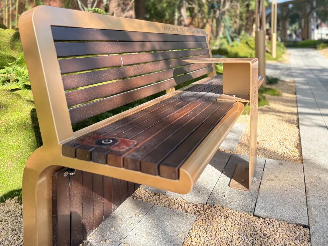 值得一提的是,公园全域采用无障碍通行设计,漫游步道两侧座椅增设手机智能充电装置,将公共服务、生态绿化与慢行系统深度融合,兼顾便利与温度。