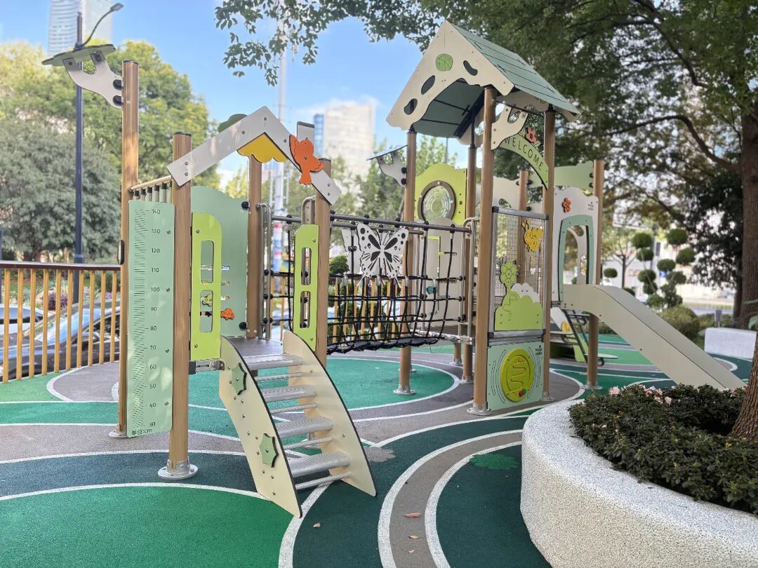 近年来,虹口区深入践行“人民城市”理念,统筹推进绿地开放共享与街区融合,让市民在家门口就能感受“推窗见绿、出门入园”的幸福生活。天潼路吴淞路口袋公园由区绿化市容局规划建设、城投集团支持,是虹口区持续推进 “公园城市” 建设、“儿童友好”城区创建与附属绿地开放共享工作的又一重要成果。项目通过历史文脉与现代设计的碰撞,将附属绿地转化为兼具生态、艺术与公共服务功能的共享空间,让市民在方寸之间邂逅自然与人文之美。