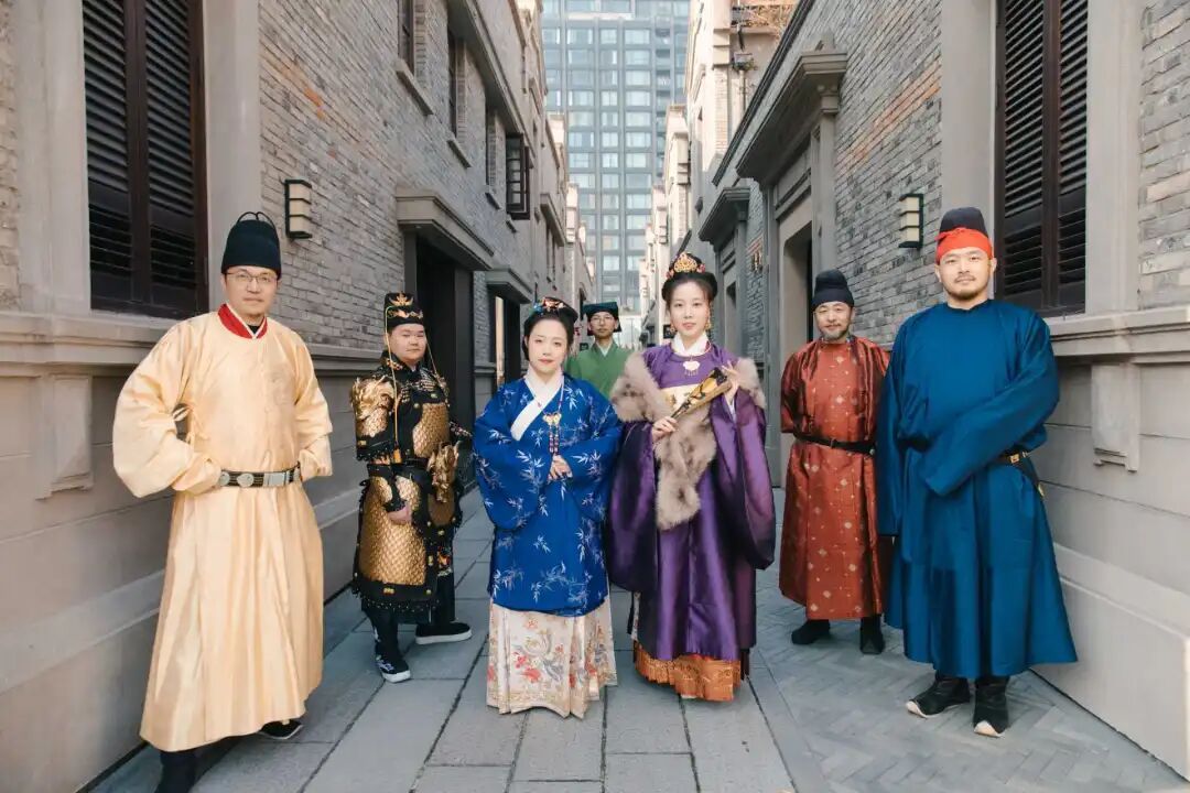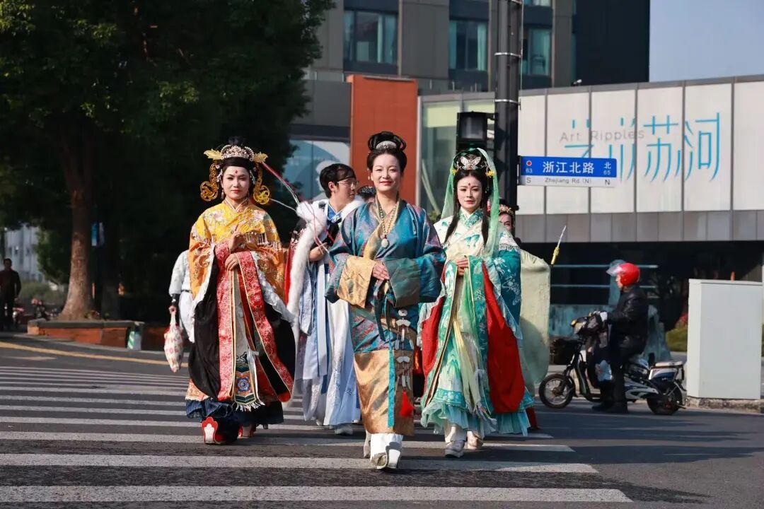 路过的市民纷纷举起手机,将这意趣盎然的画面定格——今人古服,旧景新游,传统与当代在这一刻温柔相拥。