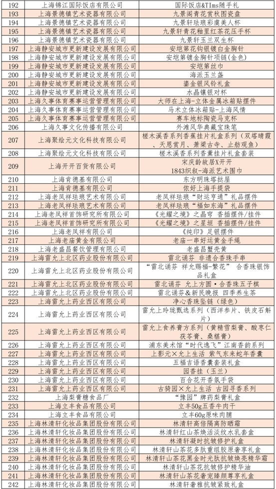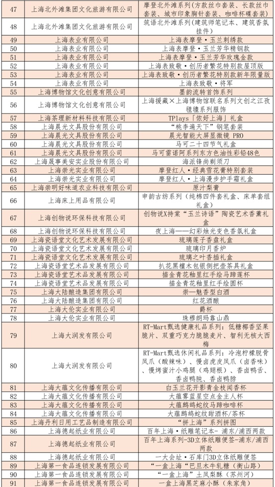 在上海市文化和旅游局的指导下,上海市商业联合会、上海市旅游行业协会联合开展了2025年“上海礼物”品牌商品评选和认定。经资质查询、企业征信、专家认证和领导小组评审,561件商品成功入选,其中文创非遗类217套/件,占比高达38.9%。 回溯2022年,当年新增“上海礼物”中非遗类商品仅5个,占比约6.7%;2024年评选中“非遗文创”已成为入围显著特点,如今占比跃升至近四成,非遗元素正稳步成为“上海礼物”的核心组成部分。这些非遗类礼物兼具非物质文化遗产的精妙传承与现代新潮设计,融合海派风情与当代审美,生动诠释上海的海纳百川。目前,“上海礼物”已在东方明珠塔、上海博物馆东馆等开设线下集合店,而宝山区也推出“宝山有礼”定海神针店等线下空间,为入选产品搭建广泛展示与销售渠道,助力文旅好物走向市场。 非物质文化遗产是中华优秀传统文化的重要载体,越来越多非遗类“上海礼物”的涌现,既是对历史文化遗产的保护与传承,更是推动文旅深度融合的重要实践,让非遗在新时代焕发新生。此次宝山区有多款特色产品入围,尽显地域风情与匠心。 “沪上雅韵,香影成双”组合包含马面裙香囊、玉兰葫芦形发簪与合香珠胸针,以上海白玉兰为元素,融入福禄寓意,香氛与配饰功能兼具,尽显温婉韵味。 “悟空香礼”以宝山长滩观光塔为灵感,按比例打造“金箍棒”线香,搭配悟空香囊、香插与地标挂件,让城市地标元素变身“可佩戴、可感知”的文化信物。 扎根宝山的中华老字号老香斋带来两款美味,与邵万生联名的“糟卤一口香”将经典脆片融入秘制糟卤,咸鲜回甘交织三重香气,呈现地道江南风味;黄油曲奇礼盒则以新西兰黄油匠心烘烤,入口即化、奶香浓郁,微咸回甘的口感平衡甜腻,带来纯粹经典的味觉享受。 这些兼具文化内涵与实用价值的宝山特色“上海礼物”,既延续了城市记忆与地域特色,又满足了当代消费需求,成为文旅融合发展的生动注脚。 2025上海礼物品牌商品 入围名单 (按拼音排序)