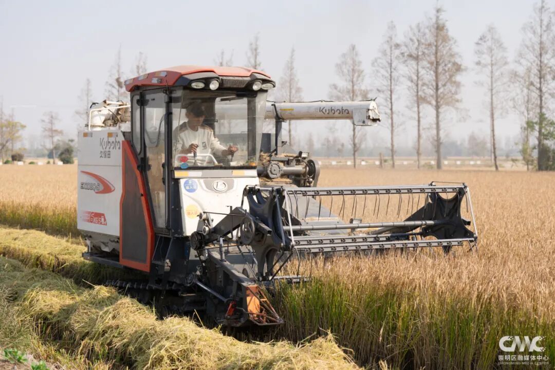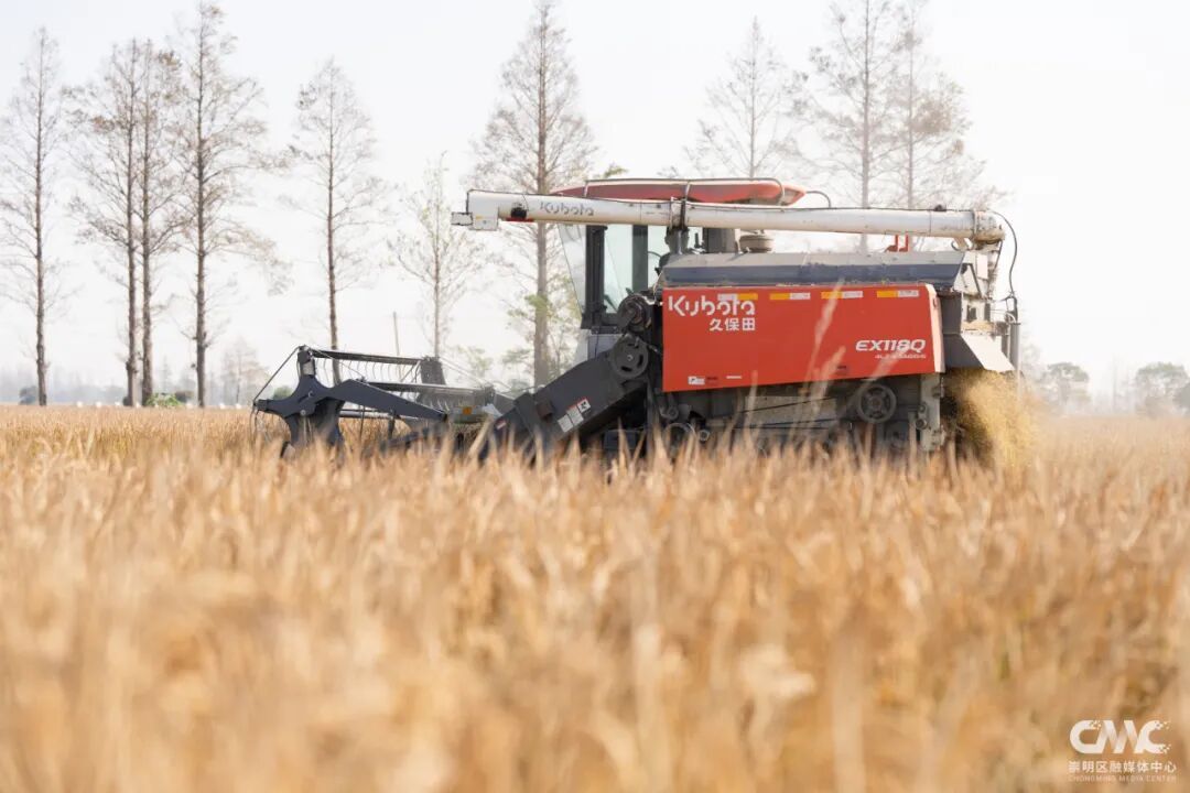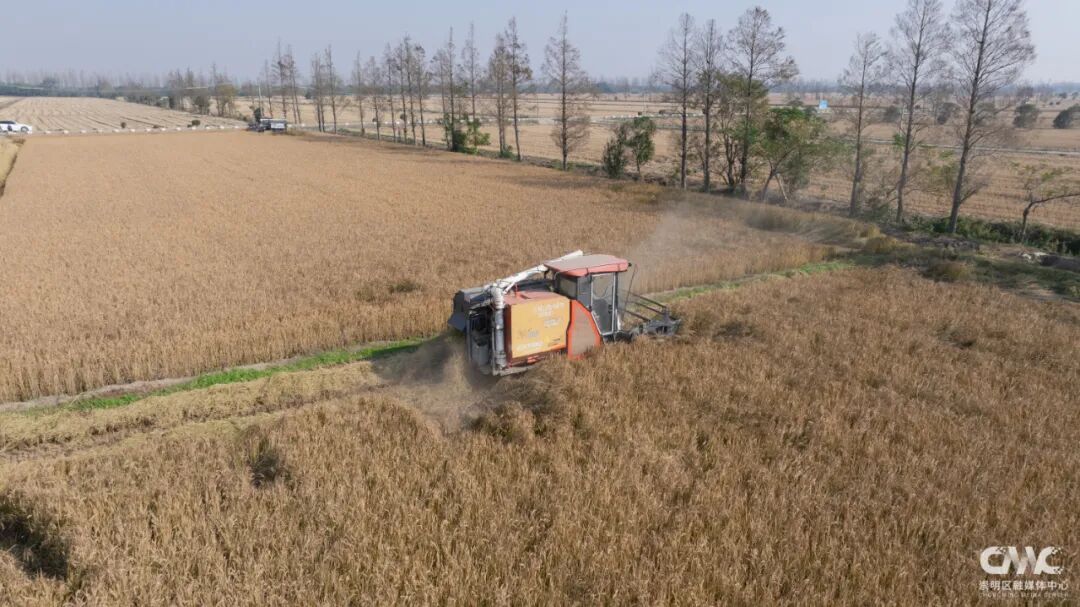 风吹稻浪,稻谷飘香。当前正是水稻丰收的季节,连日来,崇明大地上一派忙碌收割的景象,处处洋溢着丰收的喜悦。