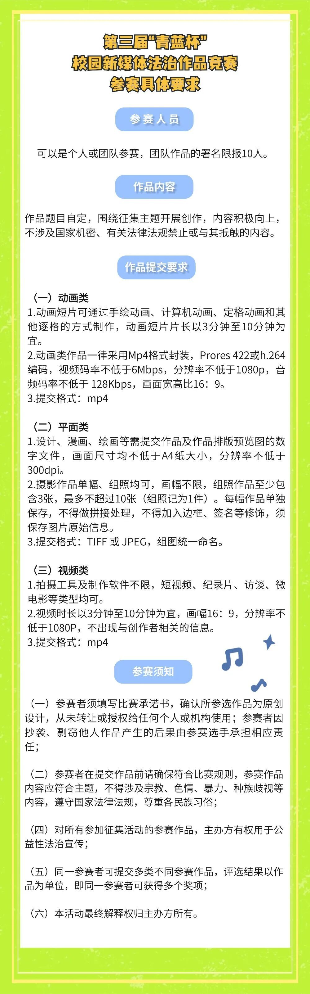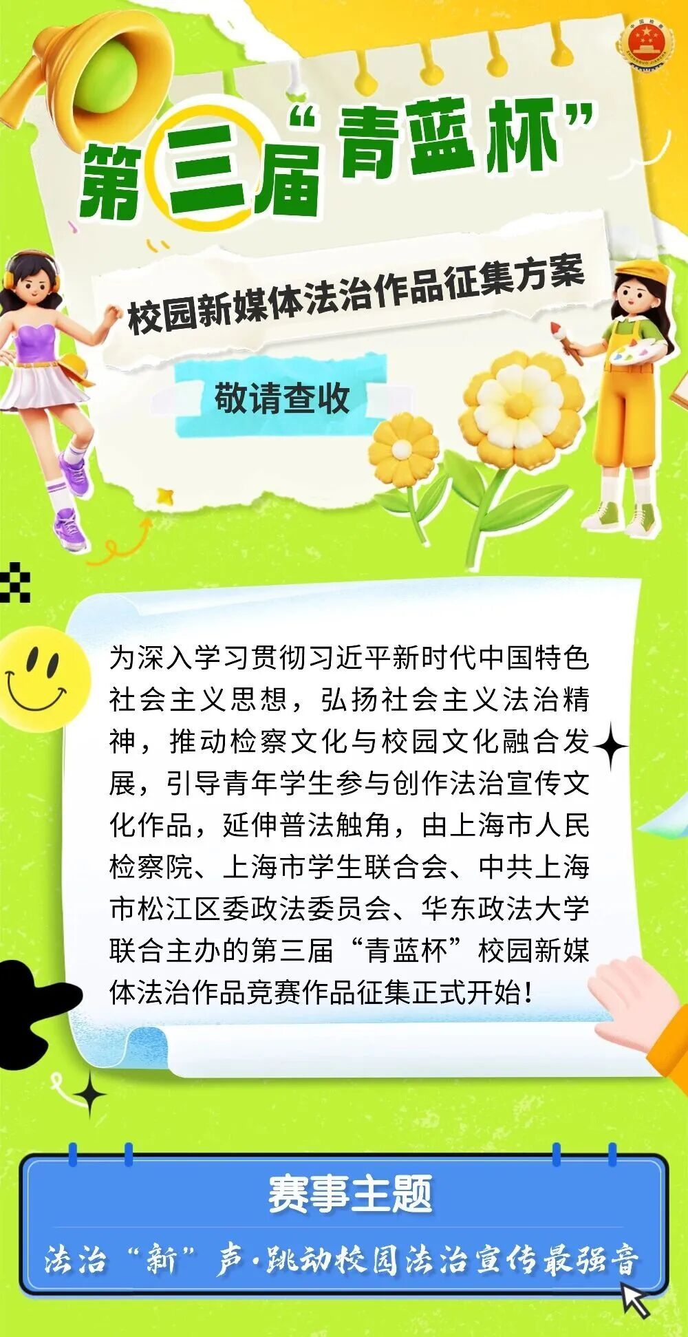 物有无穷好,蓝青又出青身处校园的你是否期待以新媒体作品传递法治声音?是否渴望在作品创作中展现青春活力?第三届“青蓝杯”校园新媒体法治作品竞赛正式启动!快来加入吧