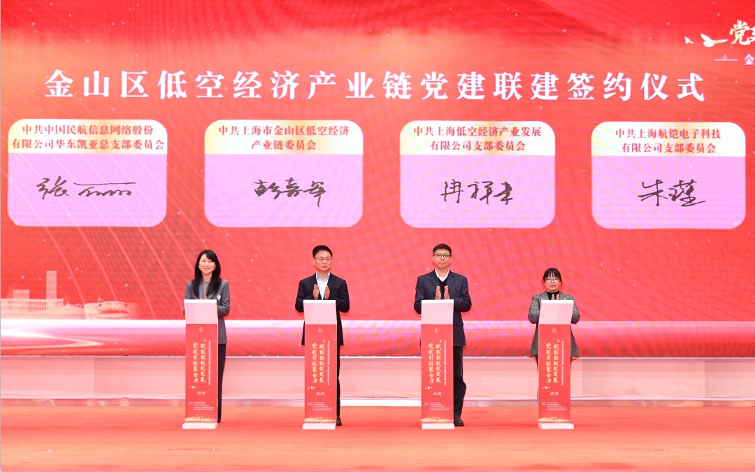 现场举行了金山区低空经济产业链党建联建协议签订仪式,通过持续扩大“朋友圈”,强化跨领域、跨系统协同,助力金山打造“低空经济+数字经济”融合发展新标杆。