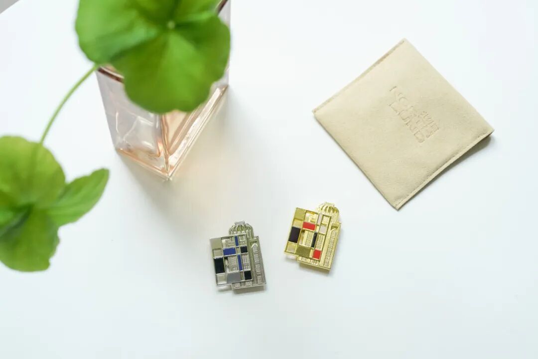 胸针采用金属浮雕工艺,以建筑穹顶叠加镂空花窗,点缀在领口或胸前,小巧精致中暗藏历史记忆。