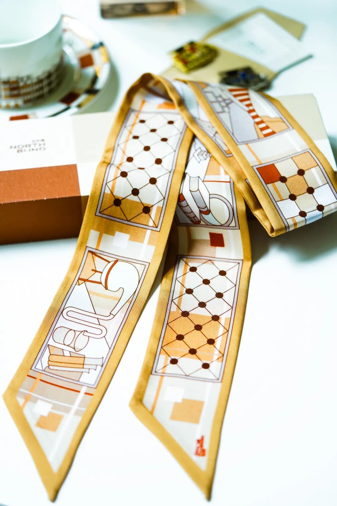丝巾采用100%桑蚕丝面料,方巾展现了建筑正面优美庄重的几何线条,长巾则复刻了雷士德最具代表性的大门装饰图案,将建筑美学浓缩在方寸之间,兼具装饰性与实用性。