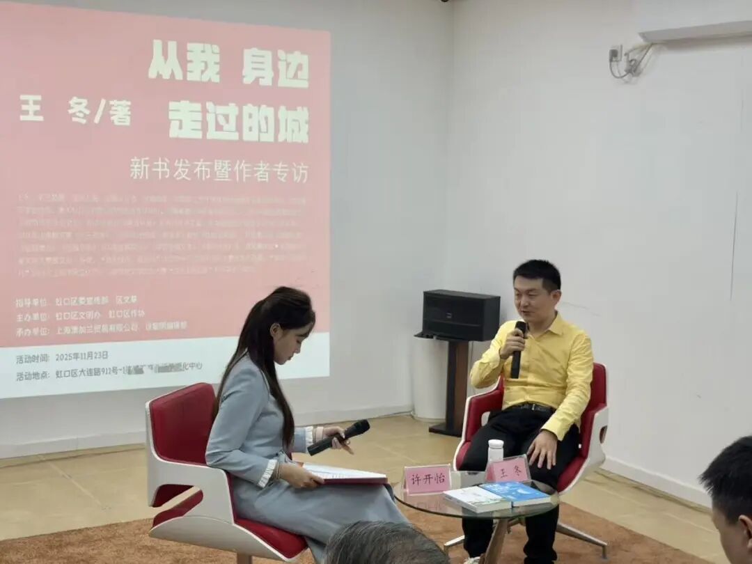 11月23日,由中共上海市虹口区委宣传部、虹口区文联指导,虹口区精神文明建设办公室、虹口区作家协会联合主办,诗黎明编辑部承办的青年作家王冬新书《从我身边走过的城》首发式暨作者访谈会,在大连路连博汇产业运营孵化中心举行,活动汇聚文学界、教育界代表及读者五十余人。