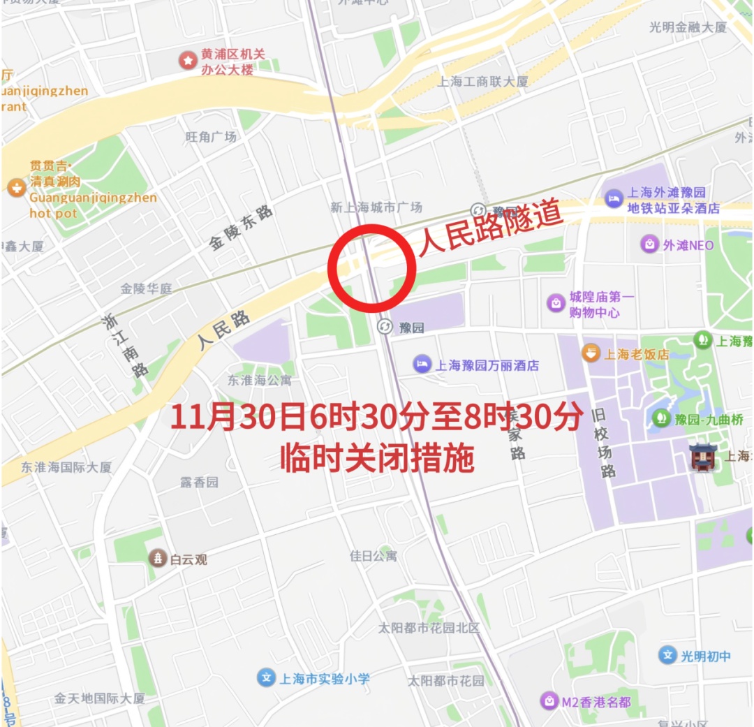 五、2025年11月30日6时30分至8时30分,人民路隧道河南南路出口实施临时关闭措施。