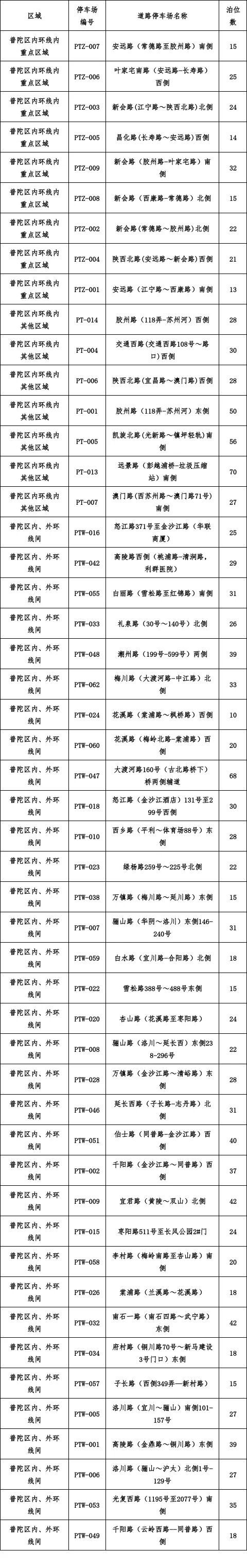 根据市、区公安交警部门核定,本次新增的5处智慧道路停车场具体设置信息如下表: