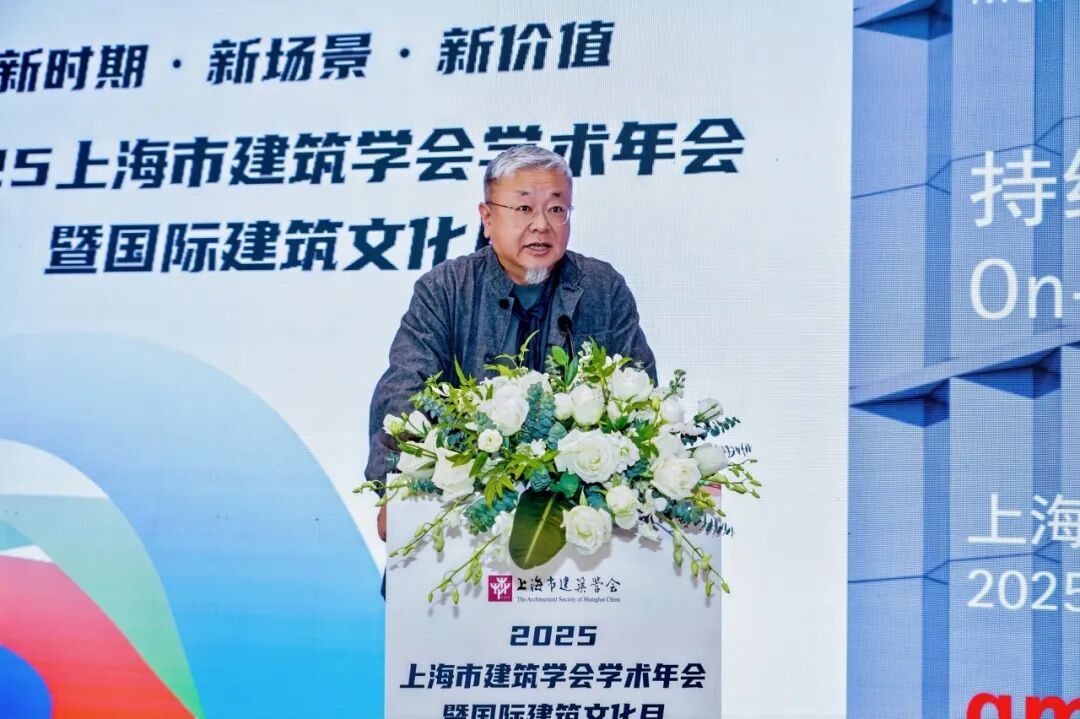 上海市建筑学会理事长常青院士在致辞中表示,今年学会在二级组织建设及各项学术活动、以及在城市更新、乡村振兴、建筑创作、对外交流和建筑师负责制试点等方面,均取得了显著进展和业绩。下半年来,学会以中央城市工作会议关于优化体系和创新、宜居、美丽、韧性、文明、智慧等七大方面城市建设任务为导向,正朝着因应挑战与机遇并存的新时期,适应空间与社会互动的新场景,提升学术与实践相融的新价值等“三新”目标向前迈进。针对城市更新与历史保护的复杂矛盾、数字时代人机互动的推进实效两大核心挑战,我们认为,其一,要对城市遗产存遗活化,对街区空间肌理维护延续,重启内生动力,引入外在触媒,借助创新衍生、整旧再生和新旧共生等城市更新的建筑途径,探索高质量、可持续的城市更新与历史保护相得益彰之道;其二,要破解数字化工具实操难题,厘清其系统性与层级性、通用性与特殊性、投入与产出经济可行性等范畴关系,以推动数智技术与工程实践的深度融合。让我们在即将到来的“十五五”规划开局年再次起航,共同续写行业新篇,为上海这座超大型国际都会的可持续发展做出创新性贡献,并勠力在全国建筑行业起到应有的引领作用。